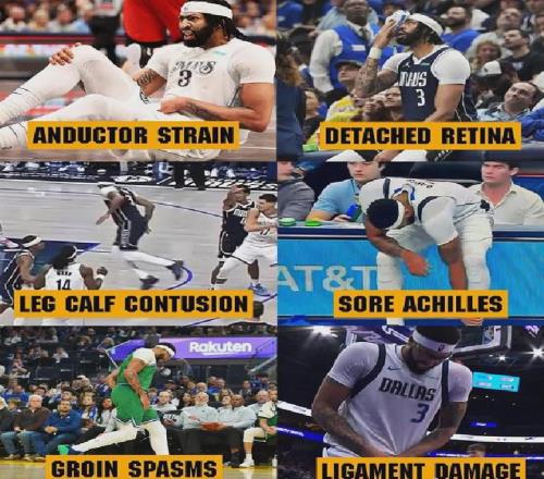据统计,浓眉加盟小牛之后,已经在腹部、眼部和大腿等9个不同的位置受伤,伤痕累累。