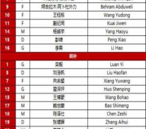 更换两人!本场U23国足首发:杨皓宇替换杨希蒯纪闻替换李镇全