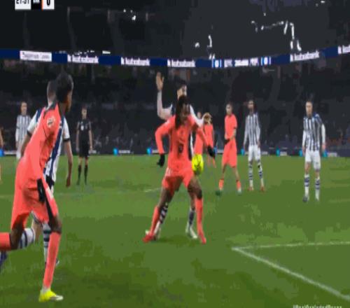 第9分钟,费尔明破门,但是因奥尔莫先前抢断犯规被判无效