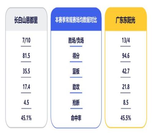 从场均回合数来看,广东队以96.1位列联盟榜首,吉林队则是以87.1排在最后一位。如何发挥自身速度与传配优势实现“以快制慢”,进而掌控比赛节奏,将是球队此战的首要前提。