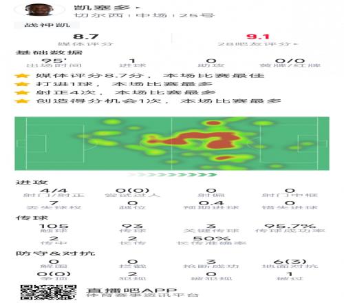 体育播报1月22日宣 在本轮欧冠,切尔西1-0击败帕福斯。以下为凯塞多本场数据: